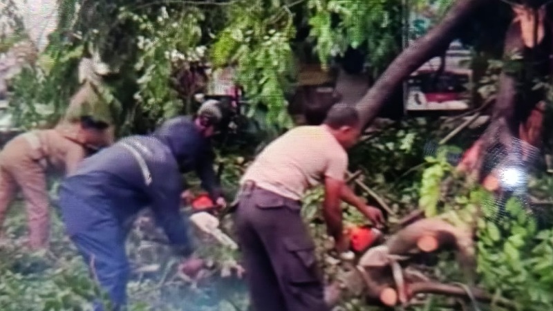 “Kami melibatkan kepolisian untuk pengaturan lalu lintas dan pemotongan batang kayu agar pohon tidak lagi mengganggu arus kendaraan,” ujar Essa.