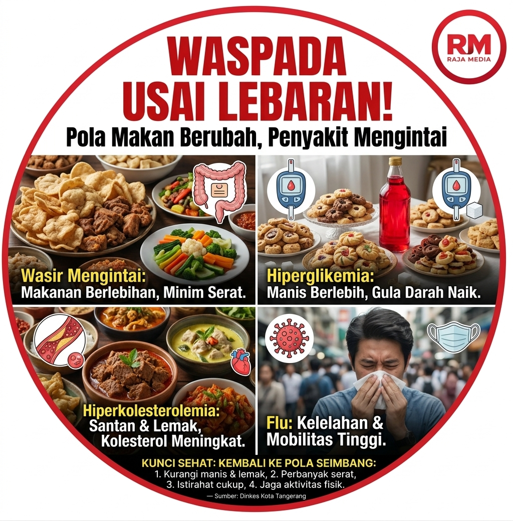 RMBANTEN.COM - Kota Tangerang — Euforia Hari Raya Idulfitri seringkali dibayar mahal dengan gangguan kesehatan. Setelah sebulan berpuasa, pola makan berubah drastis. Aktivitas padat. Istirahat berkurang.