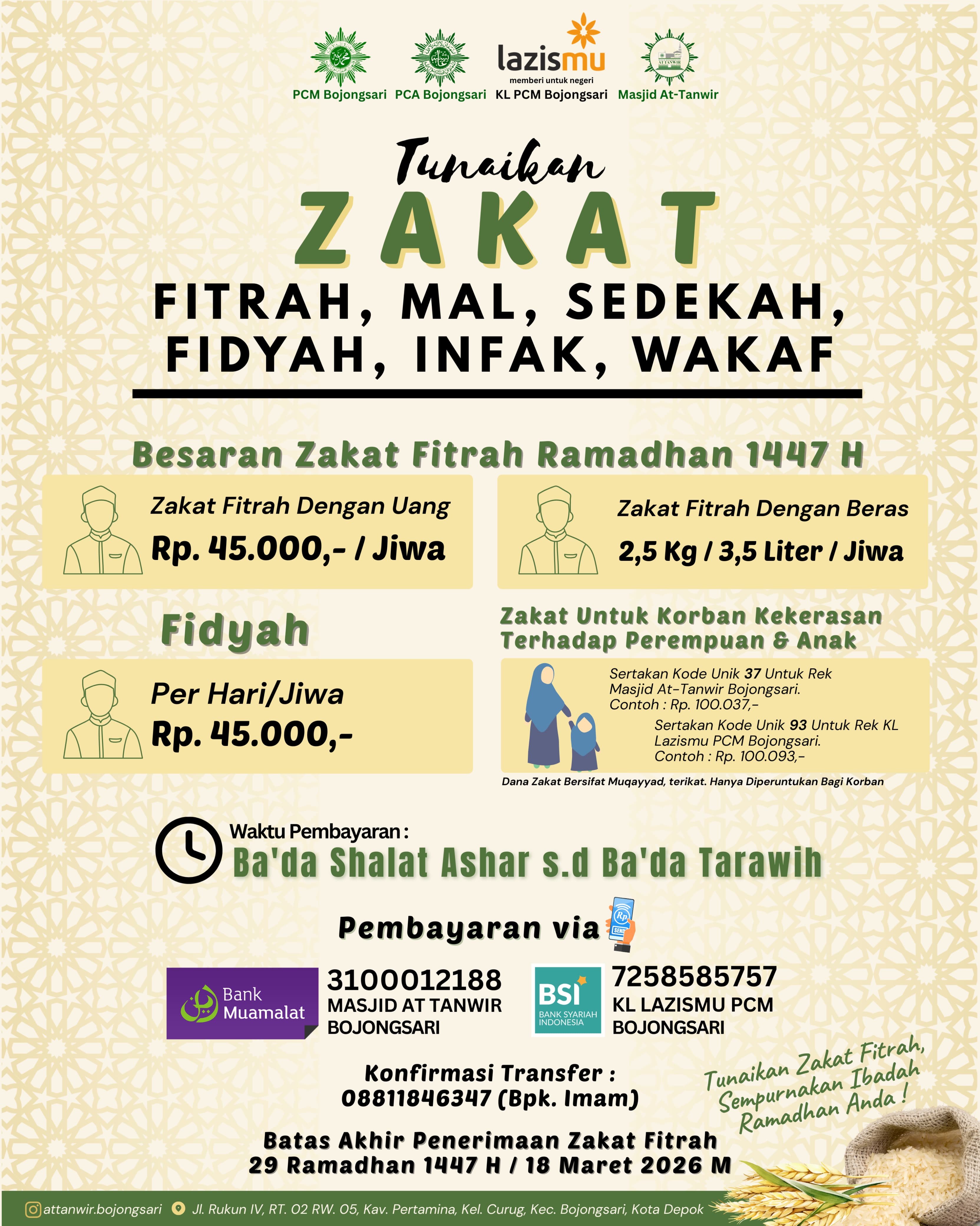 - Kode '93': Khusus untuk penyaluran melalui Masjid at-Tanwir Bojongsari, LAZISMU.